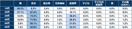 10代は家計を「親」が管理している割合が最も多い一方で、20~60代では男女ともに「自分」と答えた方の割合が高く、男性は約6~7割、女性は約7~8割と、女性の方が家計を管理している割合がやや高い傾向が見られました。