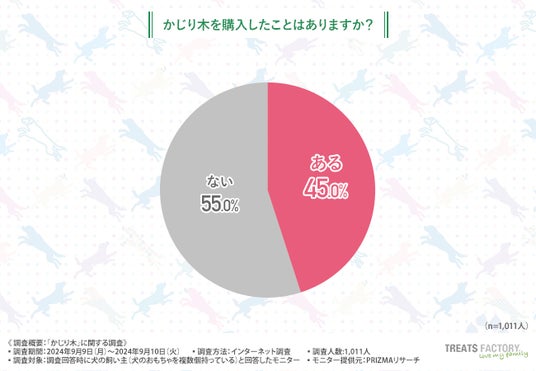 販売にともない、犬の飼い主を対象に、「かじり木」に関する調査を実施しました。