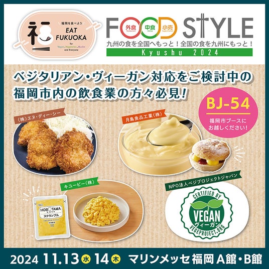 2024年11月13日(水)・14日(木)にマリンメッセ福岡で開催される「FOOD STYLE Kyusyu 2024」にて、ベジタリアン・ヴィーガン対応商品を扱う4社・団体が福岡市ブース内で共同出展します。