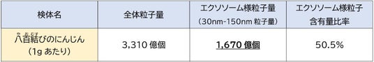 図1:「八百結びのにんじん」に含まれるエクソソーム様粒子量の分析