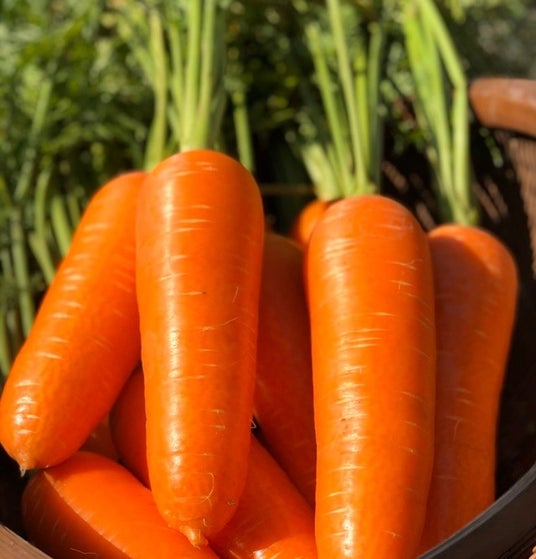 2022年7月より愛知県において未来を見つめる農家さまと共に「八百結び農法(R)」を導入して、砂地に近い圃場におけるにんじん栽培の「土壌改良」に取り組んでまいりました。化学肥料に頼る栽培方法からの転換のため、地域内畜産事業者との連携を図り、地域土着微生物がイキイキと活性する「八百結びの産土(R)(*7)」を生成して、圃場に散布することで土壌環境のベースを整え、以後、定期的に作物に「八百結びの培養水(R)(*8)」を葉面散布することで微生物活性を促してきました。その後、にんじんは良質な状態に育っていき、その糖度は12度を超える状態となりました。食べた感想は「にんじんのエグ味が減り、甘さが際立った」との評価を多くの方よりいただき、生で食べるその味と食感は、「まるで柿のようだ」と表現できます。