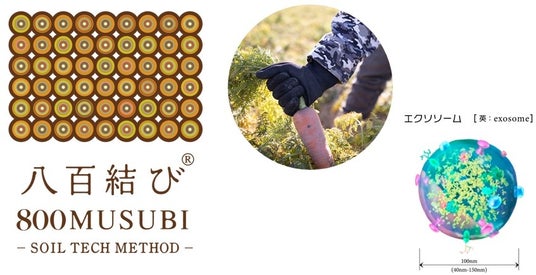 土着微生物がイキイキと活性化する健康な土壌環境を整え、「微生物由来のエクソソーム」が豊富に含有されている「八百結びの培養水(R)」を定期散布することで、「八百結び農法(R)」で育まれた作物内に豊富な「植物性エクソソーム」が蓄積されることが実証されました。食卓に並ぶ日常野菜(にんじん)から豊富な「植物性エクソソーム」を経口摂取することが可能となります。