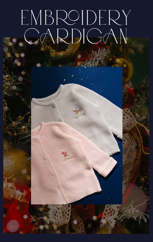 - 柔らかで肌触りの良いオーガニックコットンを使用したニットカーディガン。エレガントな刺繍が施され、贈り物にも最適です。