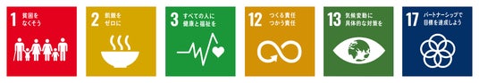 社内フードドライブ活動に取り組むことにより、SDGsの17のゴールのうち以下の目標達成にもつなげてまいります。