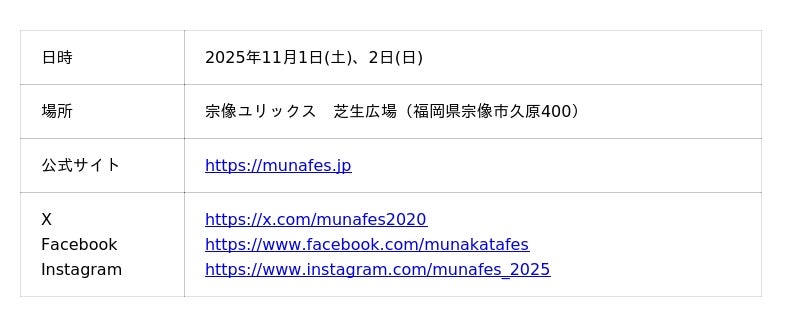 ※宗像フェス会場までの移動はご自身でお願いいたします。