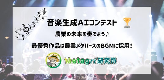 日本の農業は、これまで多くの技術革新を経てきましたが、AI技術の急速な進化により、新たな変革の時代が到来しています。Metagri研究所は、オリジナルの音楽を生成するAI技術を農業に応用することで、農業分野のさらなる活性化とデジタル革命を推進することを目指しています。本コンテストは、「農業の未来を築く」をテーマに、AI技術と創造力を融合させた音楽制作を通じて、農業と音楽の新たな可能性を探求する場です。