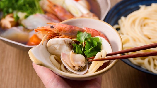 天然かつおの風味豊かな自慢の黄金だしに、新鮮な魚介と野菜の旨味が加わったこだわりの逸品です。