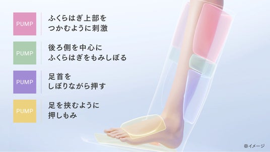 強力な独自のエアポンプが連動して、ふくらはぎから足首、つま先まで包み込んで刺激します。