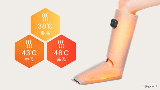 ふくらはぎだけでなく、つま先まで一度に刺激。9つのエアポンプが、溜まった脚の悩みにしっかりアプローチします。3種のもみコースと5段階レベル調整で、計15パターンの刺激を実現。温熱機能と合わせることでさらに深い癒しを体感できます。