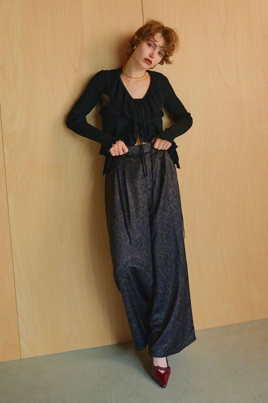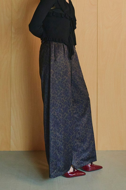 落ち着いたトーンのカラーリングで、派手すぎず大人っぽく着こなせるレオパード柄スラックス。