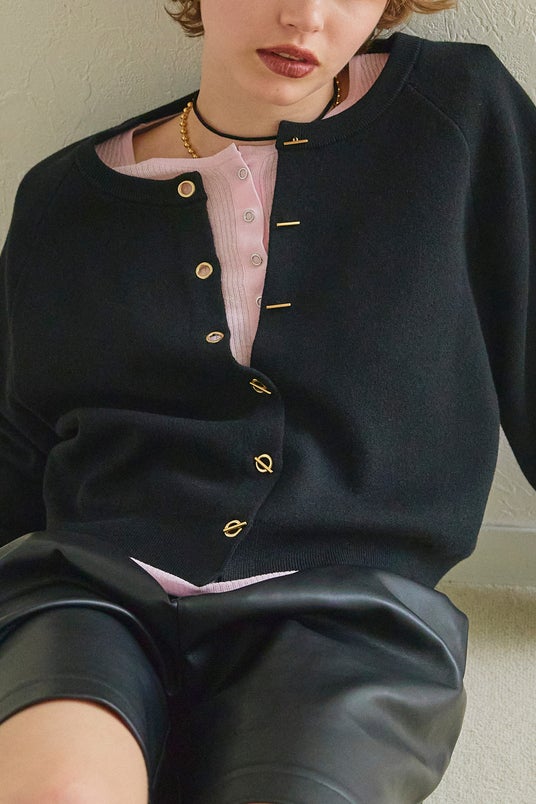トグル釦デザインカーディガン ¥6,490 (tax in)(10月入荷予定) ヘンリーネックシアーリブトップス ¥6,490(tax in)