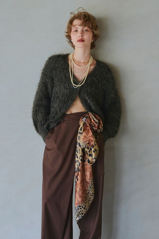 ラメフェザーVネックカーディガン ¥8,690 (tax in) (10月中旬入荷予定)