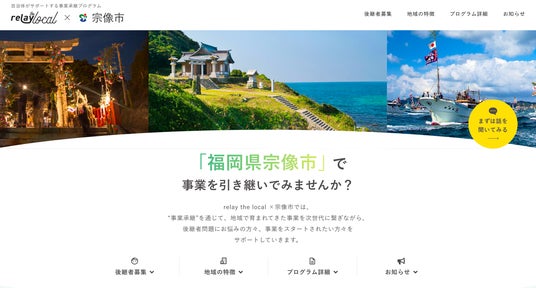 このたび宗像市とrelayは、移住・定住を伴う第三者事業承継の推進に向けて、共に取り組んでまいります。提携の第一弾として、宗像市に特化した後継者募集案件を掲載した「relay the local 宗像市」を開設いたしました。今後、宗像市に相談が寄せられる後継者不在事業者の情報をrelayに提供いただき、「relay the local 宗像市」への掲載を行います。