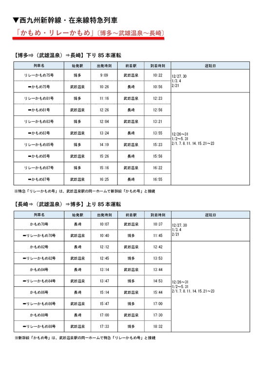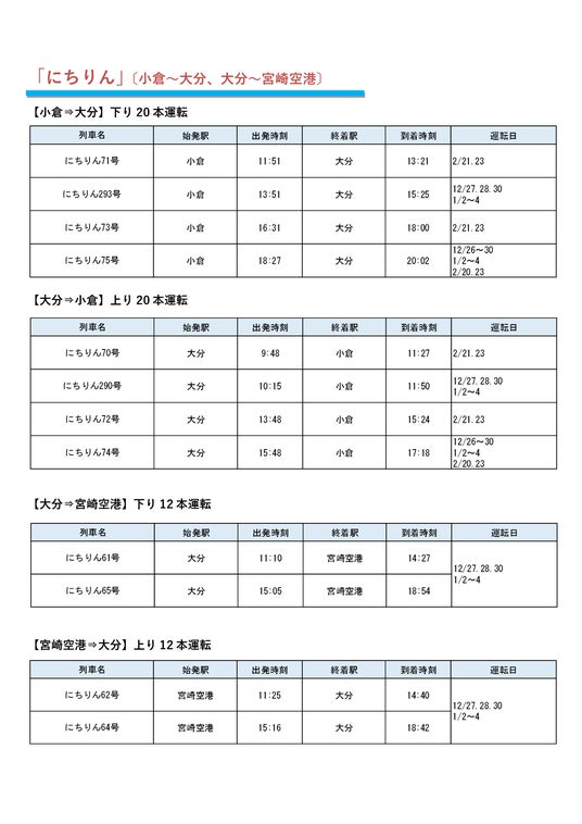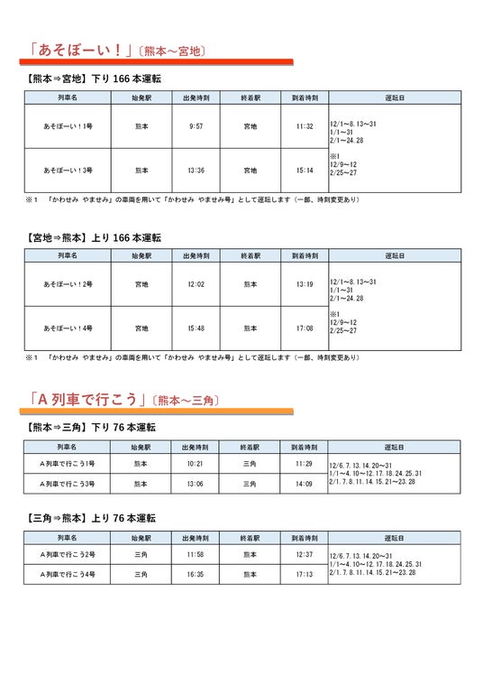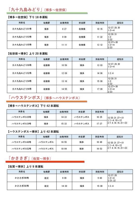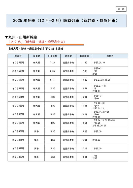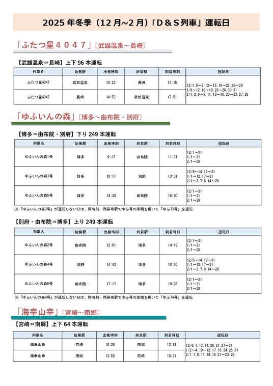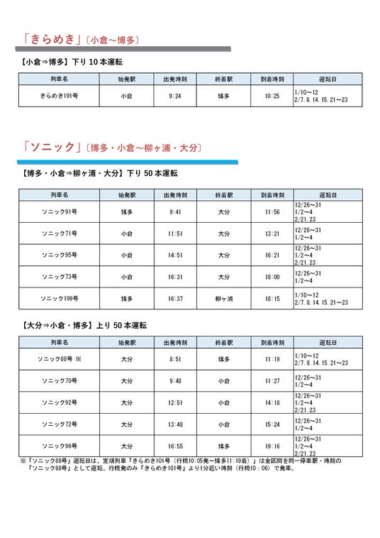 JR 九州では、お客さまのご利用が多く見込まれる冬季期間(12 月~2 月)に臨時列車(新幹線・