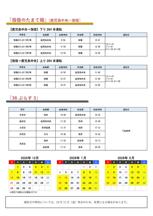 ※運転日や時刻については、10 月 17 日(金)時点の情報のため、変更になる場合があります。