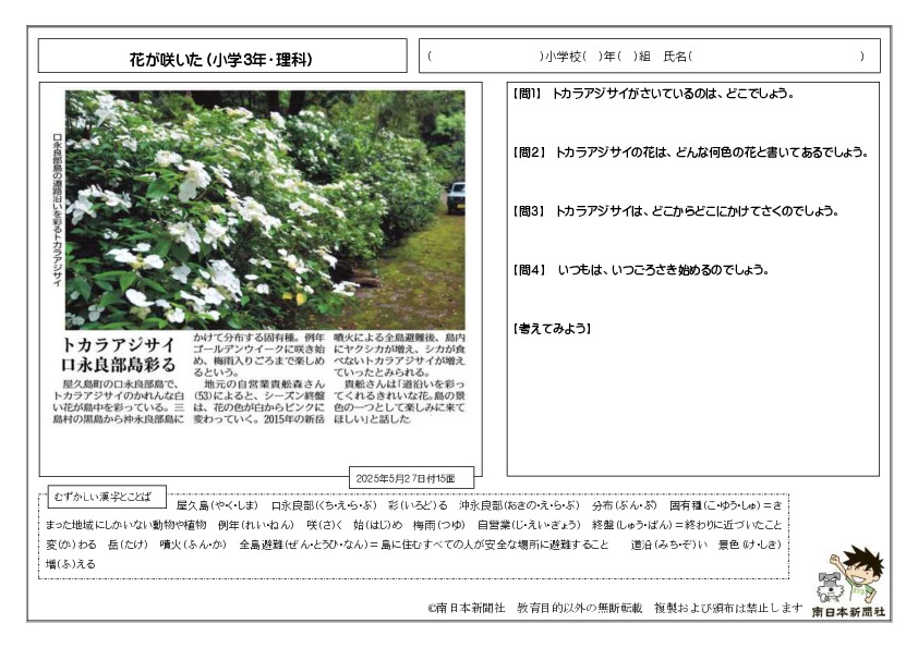 南日本新聞には、こども新聞をはじめ子どもたちの国語力・読解力・作文力などの学力向上をサポートする紙面が満載です。