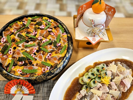 ライブキッチンではお寿司や天ぷらの出来立てを提供します。もちろん朝食にはおせち料理やお雑煮、寒ブリや黒豚を使用した特別なお料理が揃い、すべて食べ放題になります。