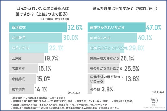 まずはじめに、「口元がきれいだと思う芸能人は誰ですか?(上位3つまで回答)」と質問したところ、