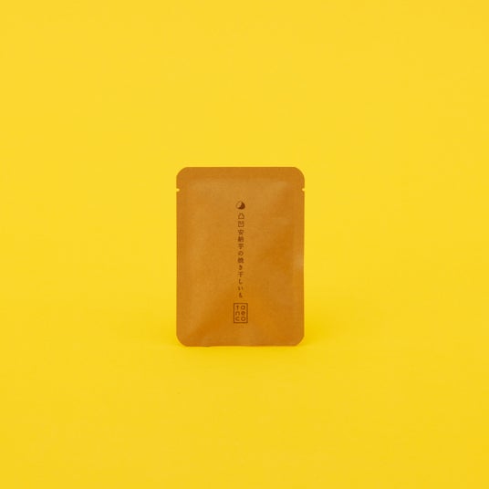 安納いもをイメージした温かみのあるデザインの紙パッケージには、個包装の焼き干しいもが5個入っています。