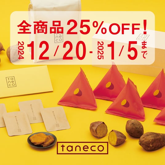 いも」をはじめとした「taneco」の全商品を公式ECサイトにて25%OFFで販売いたします。