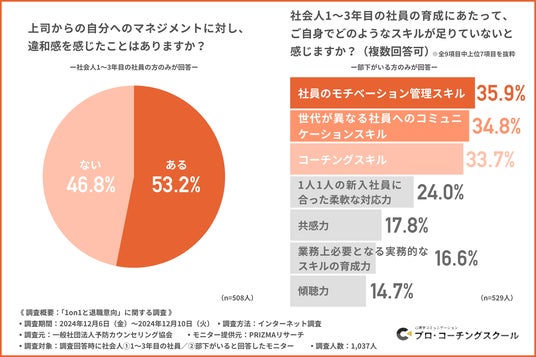 一般社団法人予防カウンセリング協会(所在地:東京都中央区)は、社会人1.1~3年目の社員/2.部下がいる方を対象に、「1on1と退職意向」に関する調査を実施しました。