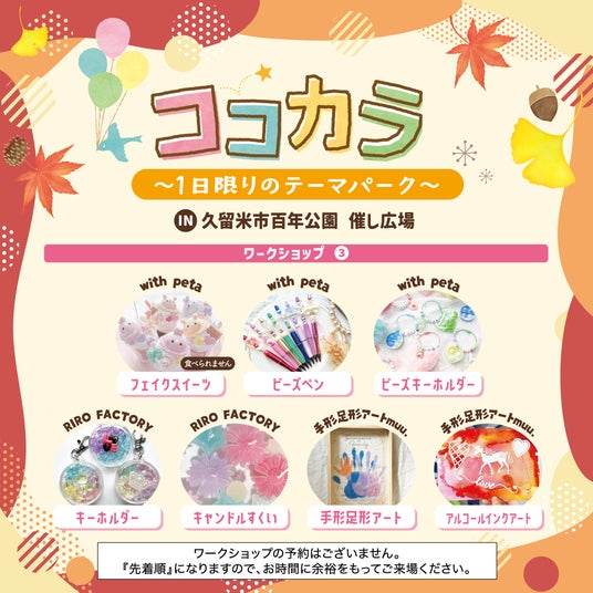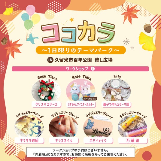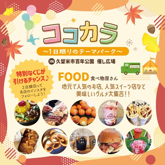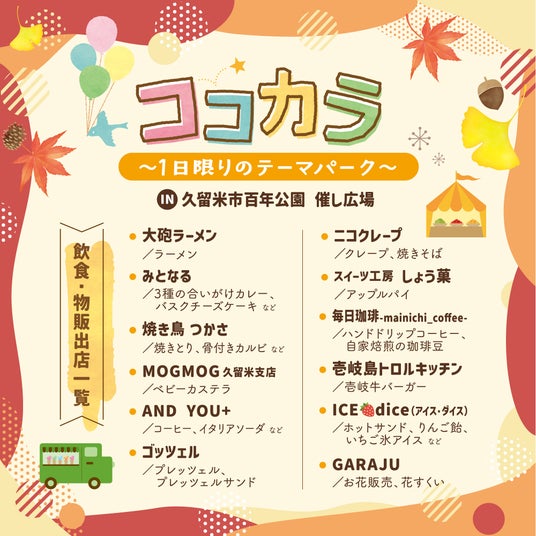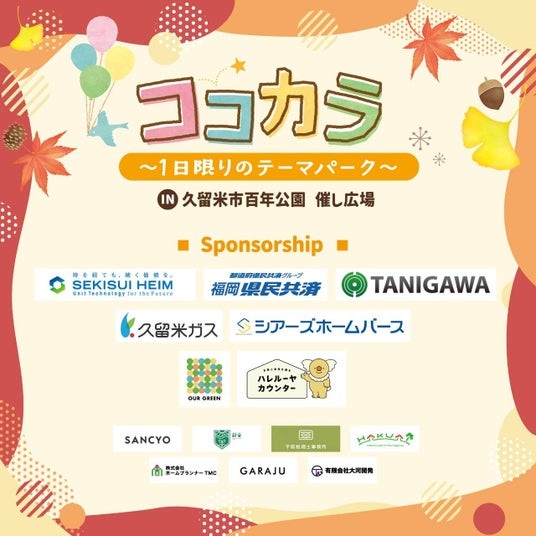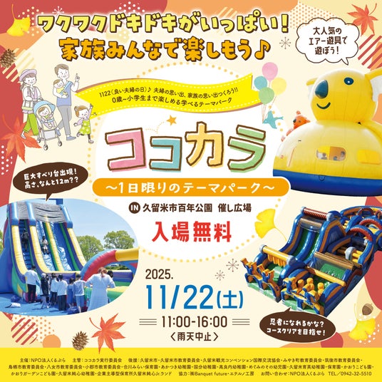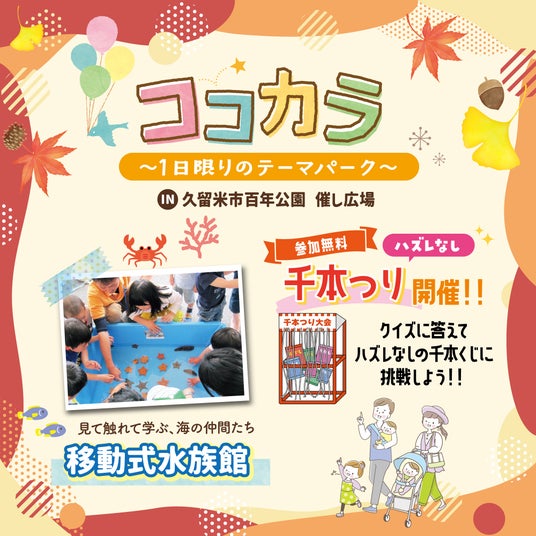 NPO法人くるぶら🎡 久留米百年公園が“1日限りのテーマパーク”に大変身 🎡【入場無料・参加自由】11月22日(土)11:00~16:00【久留米百年公園 催し広場】