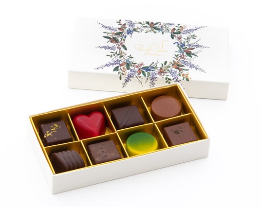 内容:チョコレート8個入(ピスターシュ、スペキュロス、パレオール、シトロン、イチゴ&フランボワーズ、オールノワール、抹茶、アールグレイ)