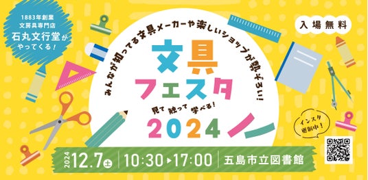 株式会社イシマル五島(所在地:長崎県五島市/代表取締役 山戸 裕樹)は、2024年12月7日(土)に「文具フェスタ2024」を開催いたします。本イベントでは、著名な文具メーカーや多彩なショップが一堂に会し、学習・仕事・趣味に役立つ文具の展示即売を行います。子どもから大人まで幅広い世代の皆様にお楽しみいただける内容となっております。