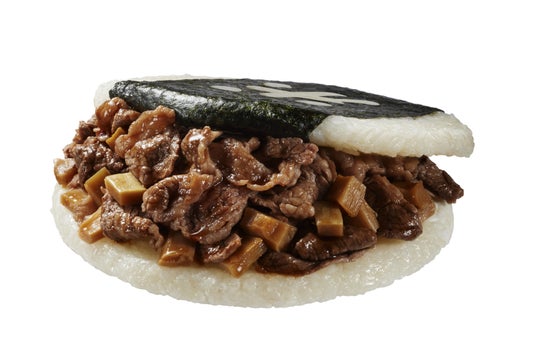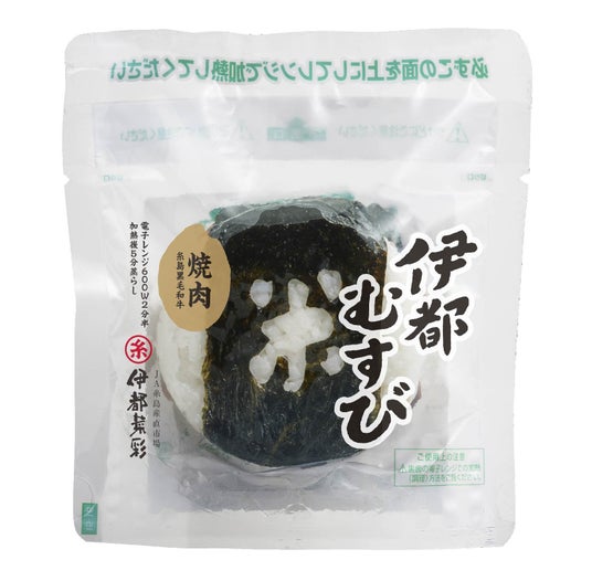 お米の味を一粒一粒感じてもらえるように、焼肉の味付けも何度もやり直し、おむすび工場とも幾度となく試作を重ねて完成した商品です。ハミ出す黒毛和牛と、あふれんばかりの肉汁がしみ込む、お米のひと粒ひと粒が本当に美味しい伊都むすびを是非お召し上がりください。