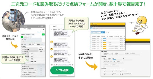 二次元コードを読み取るだけで点検フォームが開き、数十秒で報告完了!
