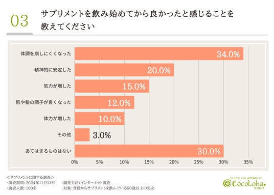 「体調を崩しにくくなった(34.0%)」「精神的に安定した(20.0%)」「気力が増した(15.0%)」という回答が集まりました。