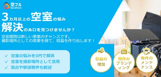 不動産オーナーや不動産会社は賃貸物件の空室期間、撮影・制作会社はロケ地不足といった問題をそれぞれ抱えていることもあり、空家や賃貸不動産の空室時間を有効活用することで、これらの問題解決に貢献できるサービスとして「空フル」の提供を開始することとなりました。