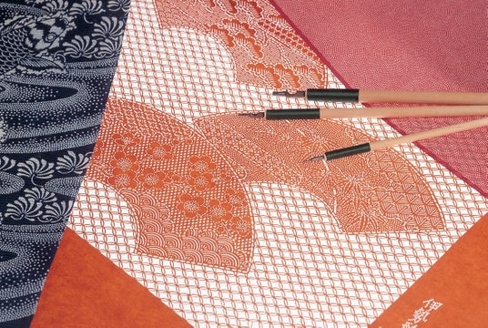 伊勢形紙は、柄や文様を着物の生地に染めるために用いるもので、千年余りの歴史を有します。柿渋を用いて和紙を貼り合わせた紙に、細かい刃先の彫刻刀で着物の文様等を丹念に彫り抜いたものです。1983年(昭和58年)4月27日から経済産業大臣指定の伝統的工芸品に指定されています。