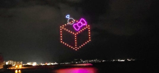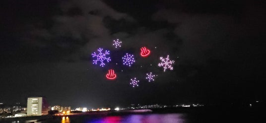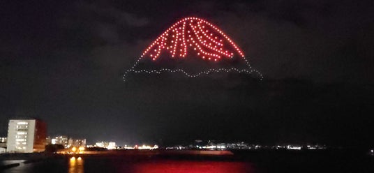 300機のドローンの光が万華鏡のように海辺に反射し、幻想的な空間も創り出しました。