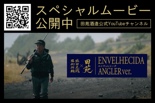 本企画は、同社釣り好き従業員の“釣りと焼酎を一緒に盛り上げたい”という想いに堀田氏に賛同いただいたことからコラボ実現、対象の芋焼酎を堀田氏に実際飲んでもらい、白身魚に相性が良いとお墨付きをいただきました。ラベルデザインは、ANGLER(釣り人)に手に取ってもらいたいという想いを込めて、堀田氏が最も得意とする「ヒラメ」をはじめ、海をイメージした「海藻」をちりばめ、そこに堀田氏直筆の「爆釣祈願」を記して仕上げました。本製品は、2018年に発売した樽貯蔵芋焼酎『田苑 ENVELHECIDA』。発売以降、多くのお客様を虜にし、世界のコンペティションでも数々の賞を受賞しています。