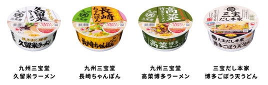 対象商品は、「九州三宝堂 久留米ラーメン」「九州三宝堂 高菜博多ラーメン」「九州三宝堂 長崎ちゃんぽん」「三宝だし本家 博多ごぼう天うどん」の4商品。