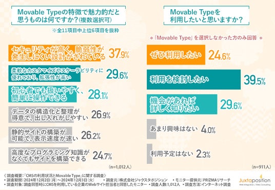 株式会社ジャクスタポジション約9割の方がMovable Typeを「利用したい」「利用を検討したい」「詳しく知りたい」と回答