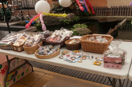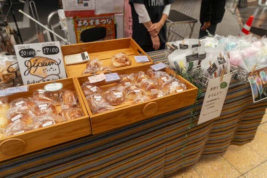 サンプラザ万町周辺の商店街内にて雑貨やフードの販売ブースも出展いたしました。