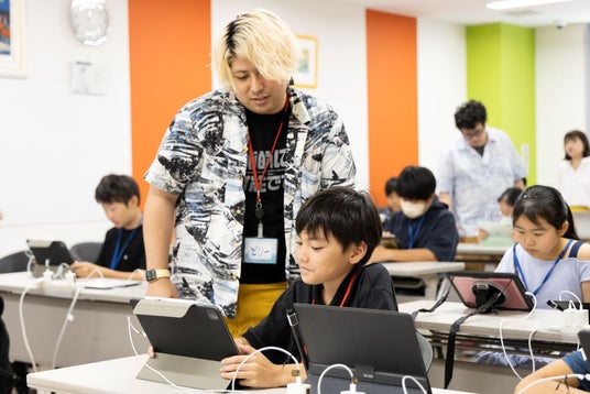 小学校でのプログラミング教育必修化から4年が経過し学習環境が広がる中、本プログラムでは、プログラミングに関心が高い子どもたちに向けて“好き”を深め、“得意”をとことん伸ばすワクワクできる体験を提供します。参加者のスキル併せて進行するため、過去の開催では大学生レベルを超える高度な内容を実施。休憩中のタイピング競争では現役エンジニアを凌ぐ実力を発揮した参加者もいました。