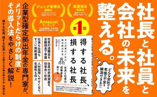 『得する社長、損する社長 中小企業のための確定拠出年金』は2022年11月28日に刊行され、Amazonランキングの9カテゴリーで1位を記録(※1)し、旭屋書店池袋店、ジュンク堂福岡店でも販売数1位(※2)を獲得するなど大変ご好評をいただいた結果、この度刊行約2年で印刷部数が累計2万部を突破しました。