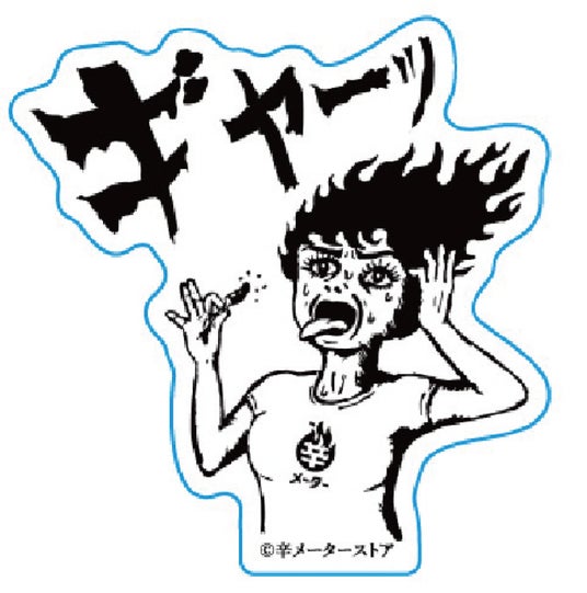 2023年の夏限定で予約販売したところ予想以上の反響を呼んだ、あの「ギャーッ」シリーズなど、辛メーター公式グッズの新作アイテムも多数ご用意しています。今回はTシャツ、ステッカーの他に、アクリルスタンド、缶バッチ、ポーチ、ボールペン、帆前掛け など、とにかくバリエーション豊富!さらに