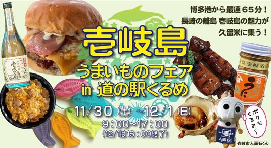 令和6年11月30日(土)~12月1日(日)の2日間、道の駅くるめイベント広場において、「壱岐島うまいものフェアin道の駅くるめ」を開催します。