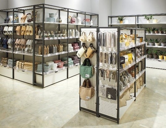 1Fの広さは約75坪(約247平方メートル )で、現在の店舗よりもコンパクトなフロア設定とし、意匠面で優れた販売商品でもある当社の主力什器を物販の売り台に使用し売り場スペースとショールーム空間を融合することで、什器展示スペースとしては1.5倍に拡張します。エントランス側は全面ガラス張りで、店内が良く見えるため、外から見ても興味をもっていただける商品陳列を予定しています。