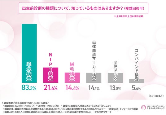 まずはじめに、「出生前診断の種類について、知っているものはありますか?(複数回答可)」と質問したところ、