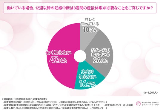 「働いている場合、12週以降の妊娠中断は8週間の産後休暇が必要なことをご存じですか?」と質問したところ、6割以上の方が