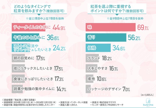 今回の調査で、紅茶が好きな方が重視するポイントや和紅茶の認知度が明らかになりました。