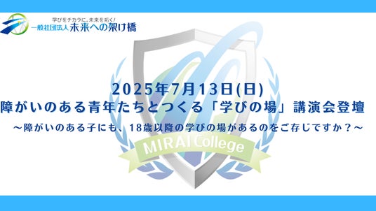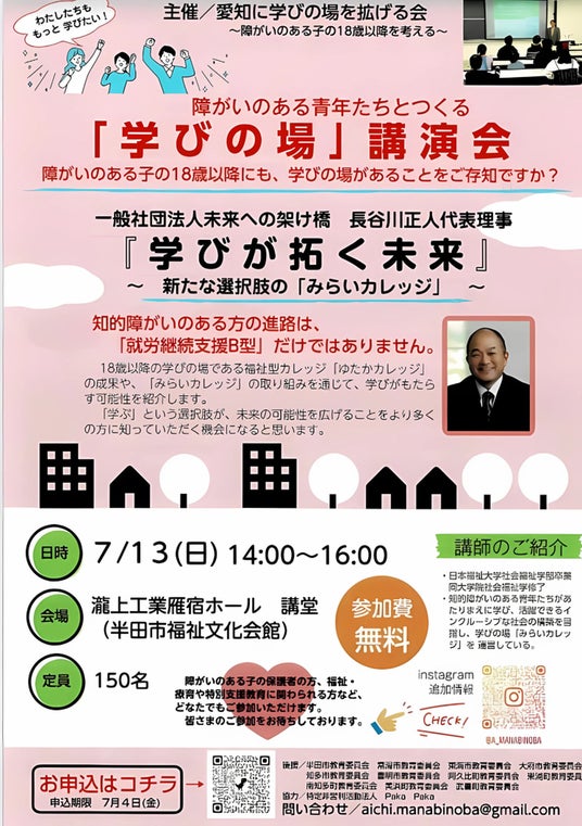 一般社団法人未来への架け橋知的障害のある18歳以上の学びの場が不足する中、現状と今後の可能性を共有する講演会が2025年7月13日、愛知県半田市で開催されます。