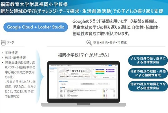 2024年6月、内田洋行は福岡教育大学附属福岡小学校において、教育ダッシュボード「マイ・カリキュラム」を構築し、運用を開始しました。5年生以上の児童が活用しており、自らの学びを記録・振り返るなど「見える化」を通じて、主体的な学習を促しています。今後は、学習傾向の可視化や指導改善への活用が予定されており、児童と教員の双方にとって、学びの循環を支える基盤として期待されており、近隣自治体をはじめとした地域の標準プラットフォームとなることが期待されております。