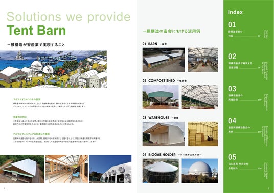 「膜構造畜舎」の製品詳細や導入事例をより分かりやすく紹介するカタログをリニューアル。