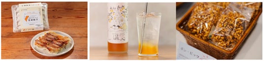 宮崎県産の小麦粉と米粉を使用したもちもちの皮をはじめ、日本農業遺産の大根やぐらで干された沢庵を餡にするなど全て宮崎産が特徴の「素材がぜ~んぶ宮崎餃子」や、県内各地の食資源に着目し、国産グレープフルーツと和紅茶の組み合わせで、癒やしを目指したリキュール「温心(おんしん) 」。そして3つ目は、グルテンフリー&ビーガン対応で、多くのスポーツ選手が訪れる宮崎県ならではの発想でつくられた、アスリートに嬉しいスポーツシリアルバー 「ポン・ビッツ」です。
